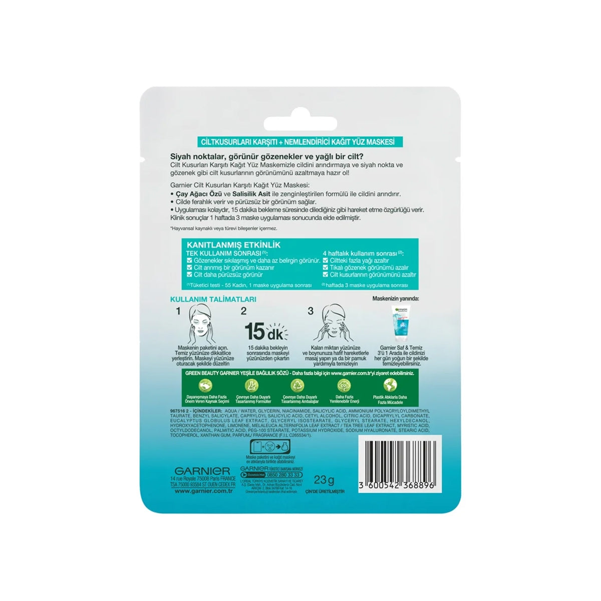 Birim fiyatı / başınaSaf ve Temiz Cilt Kusurları Karşıtı Yüz Maskesi